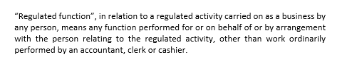 - you are an individual performing a regulated function for your principal which is a licensed corporation in relation to a regulated activity carried on as a business. In that case, you have to be a licensed representative accredited to your principal (section 114(3) and (4) of the SFO). In addition, if you are an executive director of that corporation, you also need to be approved as a responsible officer (section 125(1)(a) of the SFO).