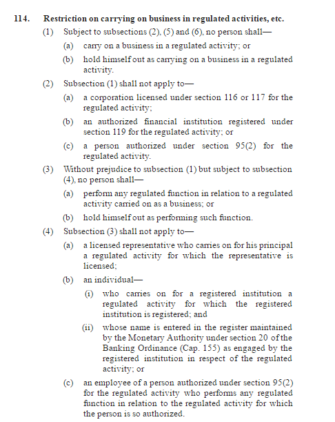 - you are a corporation carrying on a business in a regulated activity in Hong Kong (section 114(1) and (2) of the SFO);